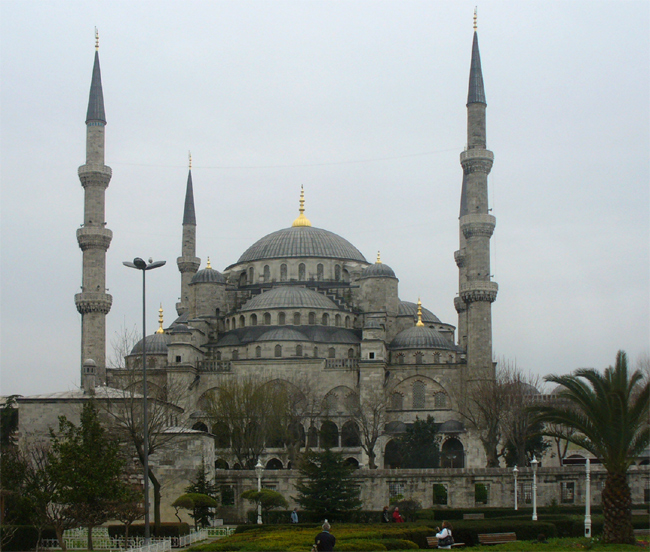 The photo above, from Wikipedia, has the Topkapi Palace on the left, the Hagia Sophia in the center and the Blue Mosque on the right. We would visit all three of these buildings during our day and a half in Istanbul. |