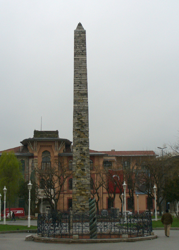 In front of the obelisk is a spiral column, like snakes coming out of a hole in the ground. It commemorated a victory over the Persians.