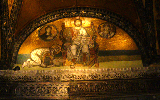 A mosaic over the Imperial Door shows Christ on His throne and Leo VI kneeling before Him.