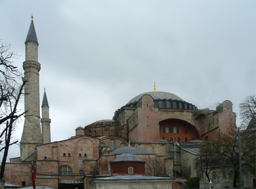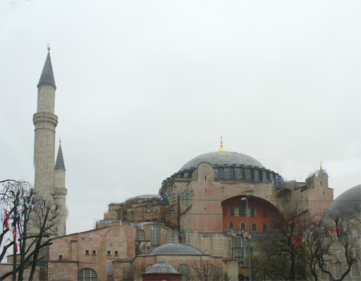 We walked to the Aya Sofya, the Church of Divine Wisdom, constructed by Justinian in 537 AD. The dome, supported by pillars and four half-domes, collapsed in 558 because of an earthquake and was then reduced in size.