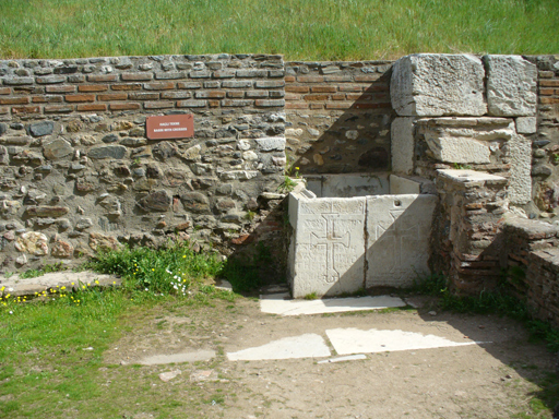 One of the shops had a basin with crosses carved into it.