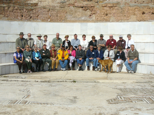 The synagogue was about 200 feet long and 60 feet wide. At the far end in the apse were marble benches which may have been used by the elders. Today it is also occupied by the elders (or the elderly)-the members of our tour!