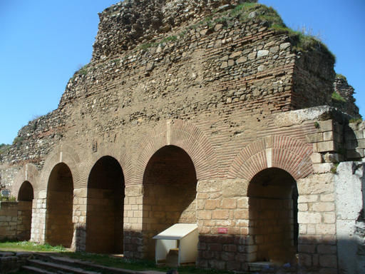At the left end of the gymnasium is another building which first built to be dressing rooms or lecture halls. It was redesigned in the 2nd century as a large hall, perhaps intended to be used as a Roman civil court. Later in the 3rd century, this hall was turned over to the Jewish community at Sardis and renovated as a synagogue.