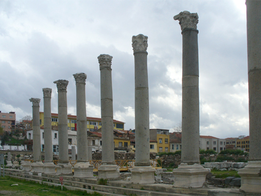 In the middle of the city of Smyrna (Izmir) we saw this agora with the pillars of a stoa at the side.