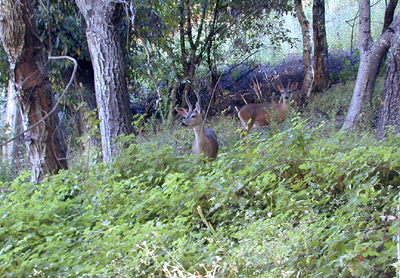 As we were packing the next morning to leave, we spotted four deer in the area. Two stood quietly under the trees for this picture.