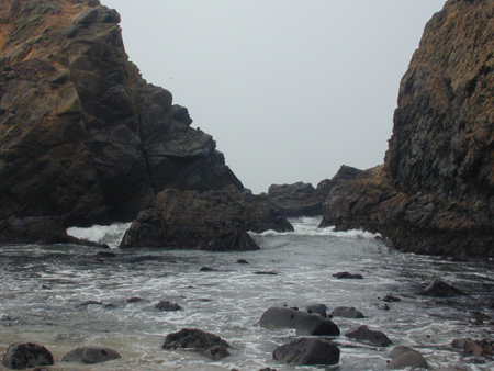 Our first stop was at Pfeiffer Beach. The entrance itself was impressive, with these trees guarding the path.