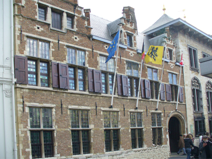 A local guide took us on a walk of the Old Town area of Antwerp. Our first stop was at a 1591 building in an alley. This area is now filled with restaurants.