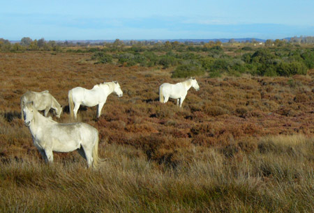 The Camargue horse is the traditional mount of the Gardians, the French equivalent of cowboys, those ranch hands of the Camargue who are responsible for rounding up the wild black bulls that graze the land. Over time, the Gardians have developed the original breed of Camargue horses into a surprisingly agile, surefooted and reliable horse.