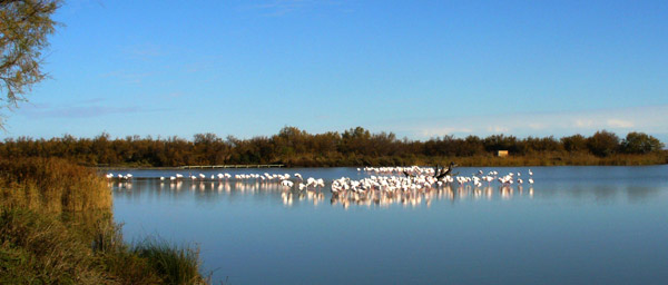 Our next stop was at the Ornithological Reserve where most of the birds of Camargue, both resident and migratory, can be seen. The central area of the park has birds of prey, with many different owls, eagles, hawks, harriers, buzzards and vultures. Marsh birds and sea birds are here, with geese, swans, ducks, egrets, storks, herons and the pink flamingo, the icon of the Camargue.