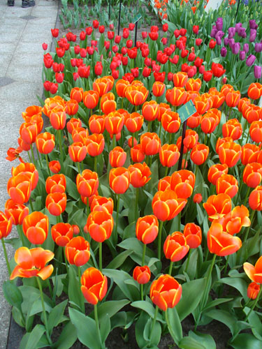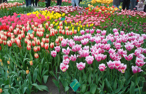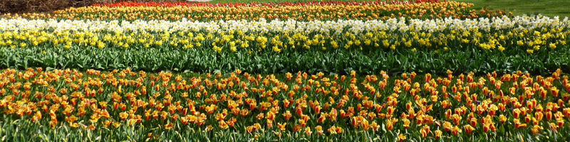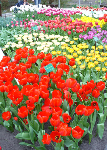Although the tulips were not yet at their peak, there were some early bloomers. The hyacinths and daffodils were in full bloom, so there were some very interesting areas, such as this with daffodils in the middle and tulips on both sides.