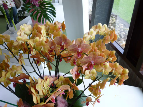 A few drops of rain led us into a pavilion filled with orchids and other flowers.