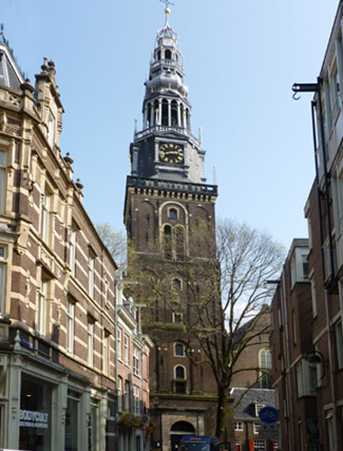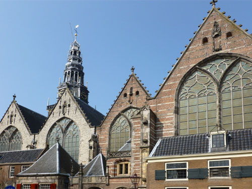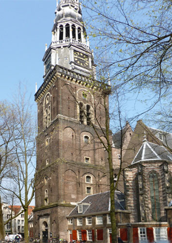 The side of the Oude Kerk. Note the small 18th century houses built along the side of the church, both in this photo and the right photo above.