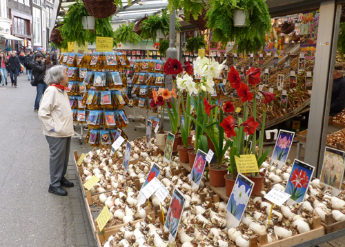 Ater the overnight flight we wanted to keep moving, so we walked to the flower market. Elizabeth admired the amaryllis plants.