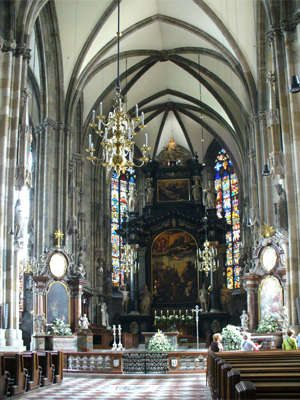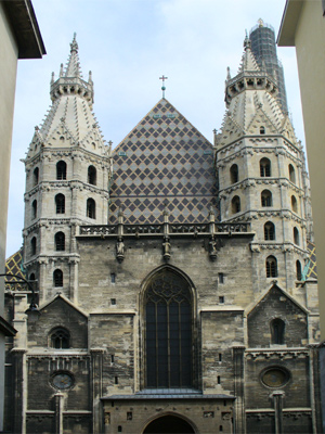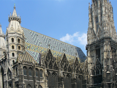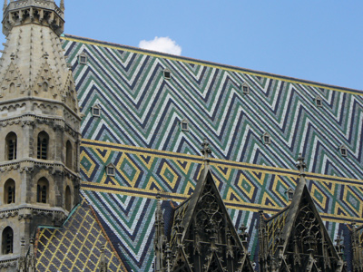 A glory of St. Stephen's Cathedral is its ornately patterned, richly coloured roof, 111 meters (361 feet) long, and covered by 230,000 glazed tiles.