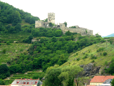 Durnstein is located in the heart of Austria's Wachau wine region. The castle ruin on top of the hill is Kuenriger Castle. Richard the Lionheart was imprisoned here in the 12th Century.