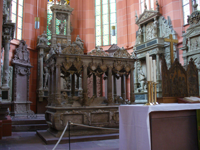 The altar area with a tomb created in 1648 for Count Ludwig II and Countess Anna.