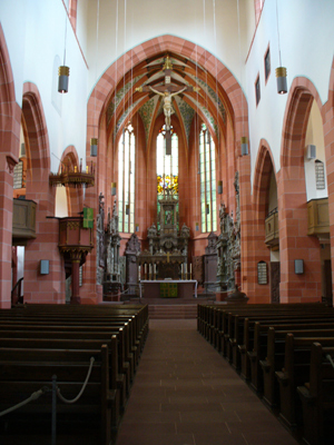 The interior of the Stiftskirche, a Gothic church built between 1384 and 1445.