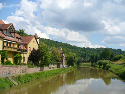 A view of the Tauber River, which meets the Main River here in Wertheim.