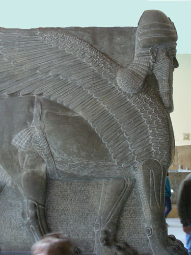 A lion with wings and a man's head to guard Assyria's royal palaces.