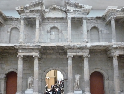This department also contains the Market Gate of Miletus, which dates from about 120 AD. It is almost 55 feet high and 100 feet wide. The well preserved elements of the gate, which were destroyed by an earthquake around the year 1100, were dug up by Theodor Wiegand during the museum's excavations (1899-1913).