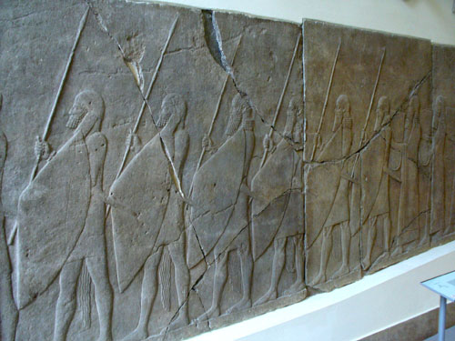 Assyrian soldiers from the Palace of Sennacherib in Nineveh, from about 600 BC.