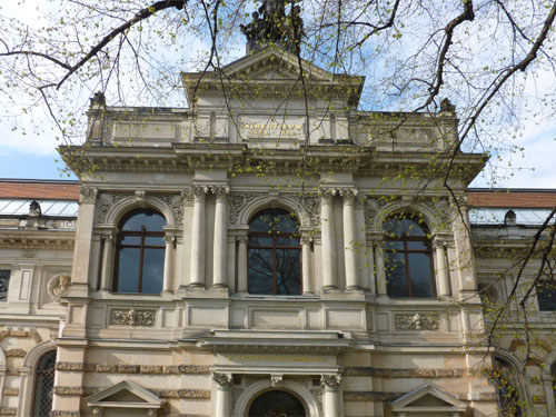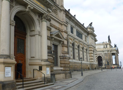 There were many beautiful buildings in this area of the city. This is the Albertinium, a modern art museum. It also was destroyed in the February 13, 1945 bombing of Dresden and was rebuilt by 1953.