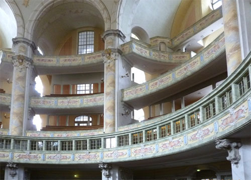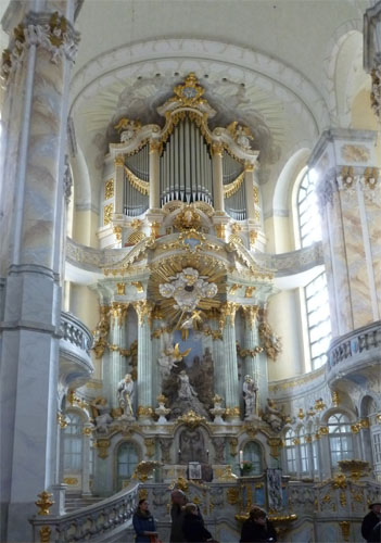 The interior of the Frauenkirche. Two thousand pieces of the original altar were cleaned and incorporated into the new structure.