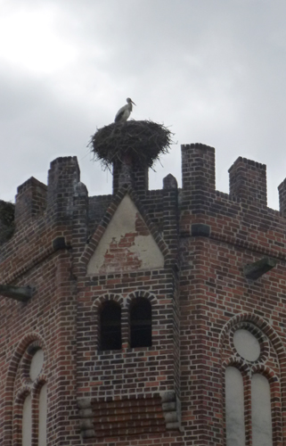 The following was an interesting tower, made more interesting by the stork nested at the top, seen in the telephoto shot.