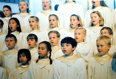 Allison and William singing in the childrens' choir at Solana Beach Presbyterian Church. Monica sings with this choir also, but was at a swimming meet that day.